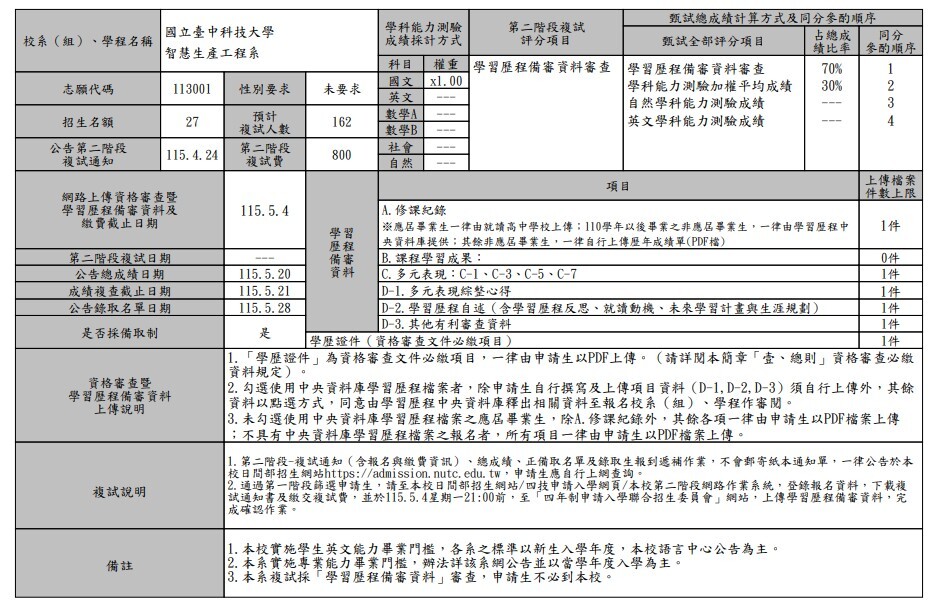 【臺中科大】各院系招生網頁/學習準備建議方向/備審資料準備指引